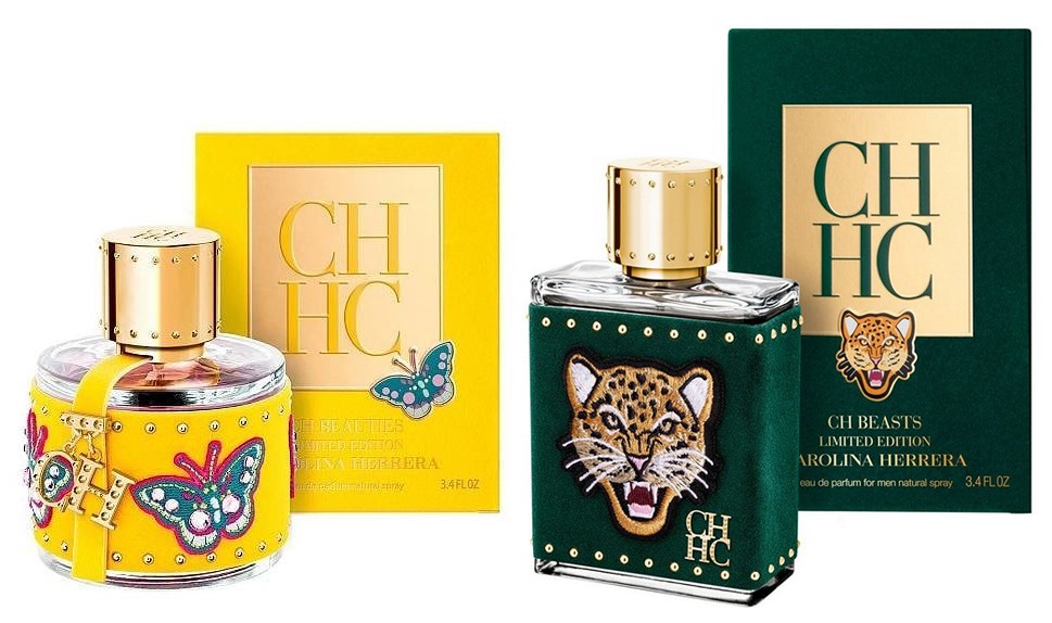العبوات رائعة! يظل شكل الزجاجات كما هو حال الإصدارات السابقة من المجموعة، بينما يتطابق التصميم تماما مع الروح البرية للإصدارات المحدودة. زجاجة الرجال، CH Beasts مغطاة بالمخمل الأخضر ومزينة بصورة قطة برية، في حين أن الزجاجة الأنثوية CH Beauties مغطاة بالمخمل الأصفر اللامع ومزينة بفراشة وشريط أصفر مزين بقلادة تحمل شعار CH.