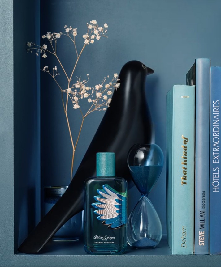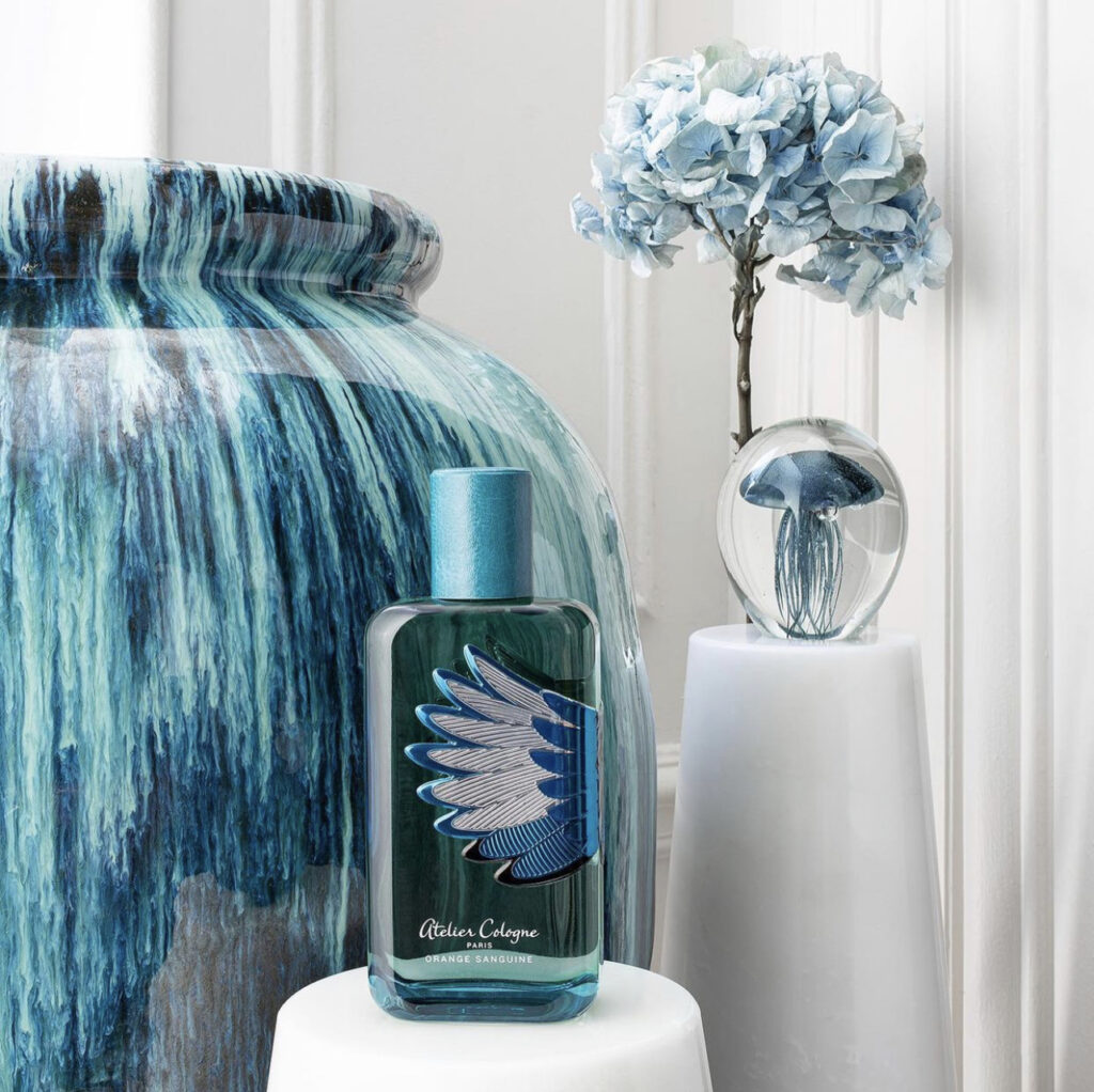 في صيف عام 2021 تقدم Atelier Cologne أحدث إصدار محدود من زجاجة عطر Orange Sanguine الشهير: Cologne Absolue Orange Sanguine Love Birds Collector، إنه يدعونا إلى صباح مشمس شاعري في بوسيتانو يقدم الجمال الغني لعصير البرتقال الأحمر، كما تقول العلامة التجارية: “الزجاجة الزرقاء الشفافة السحرية مزينة بلوحة معدنية مقطوعة بدقة ومطلية يدويا بأندر أنواع الريش”.