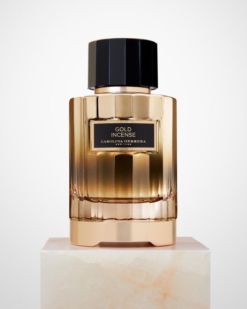 عطر جولد انسنس من كارولينا هيريرا Gold Incense Carolina Herrera عطر عنبري ذهبي جامع بين رائحة ثلاث عطور قوية في عالم العطور بكتبهم في الملاحظات.