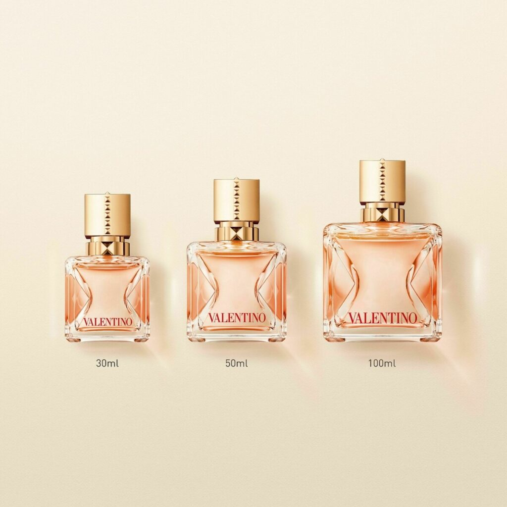 Valentino Voce Viva Intensa Eau de Parfum Intense متوفر بثلاثة أحجام 30 مل بسعر 54 يورو و 50 مل بسعر 76 يورو و 100 مل ماء عطر مركز.