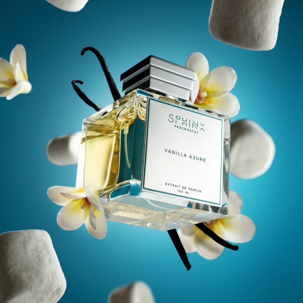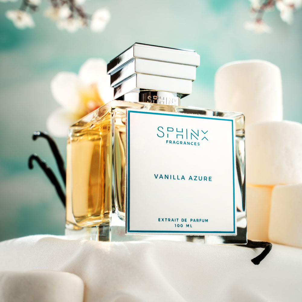 عطر Vanilla Azure متوفر بحجم ١٠٠ مل ماء عطر بسعر ١٥٠ دولار أمريكي من خلال موقع سيفنكس الرسمي.